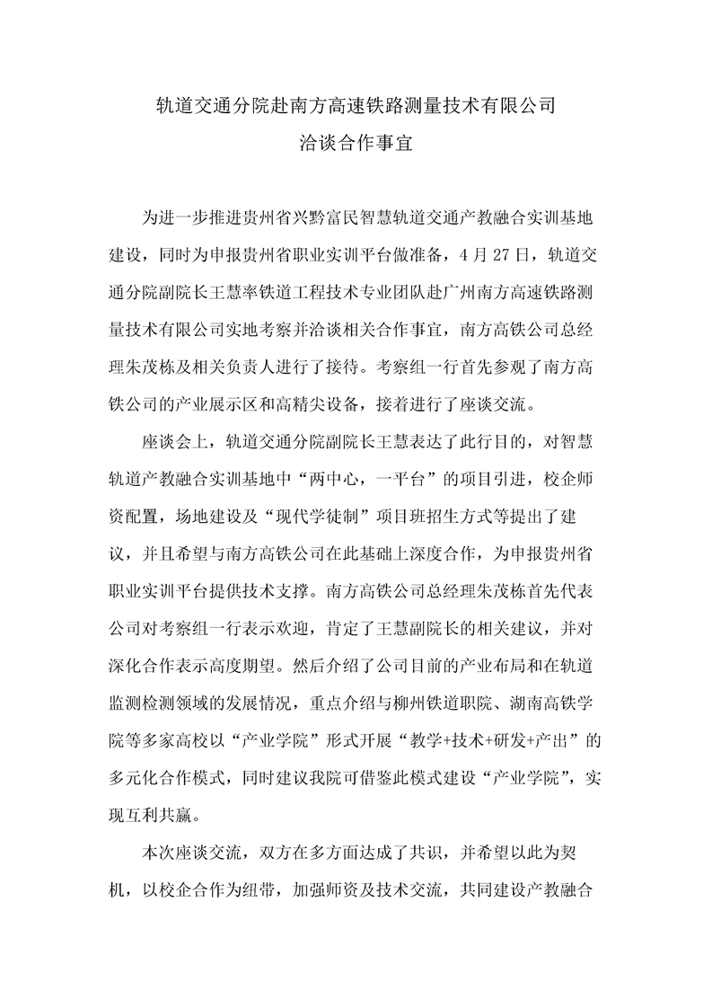 轨道交通分院赴南方高速铁路测量技术有限公司 洽谈合作事宜