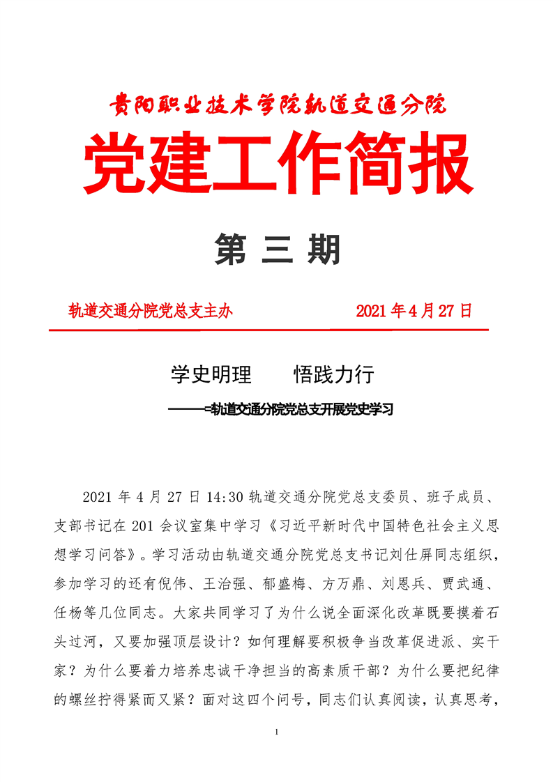 学史明理 悟践力行 ——轨道交通分院党总支开展党史学习