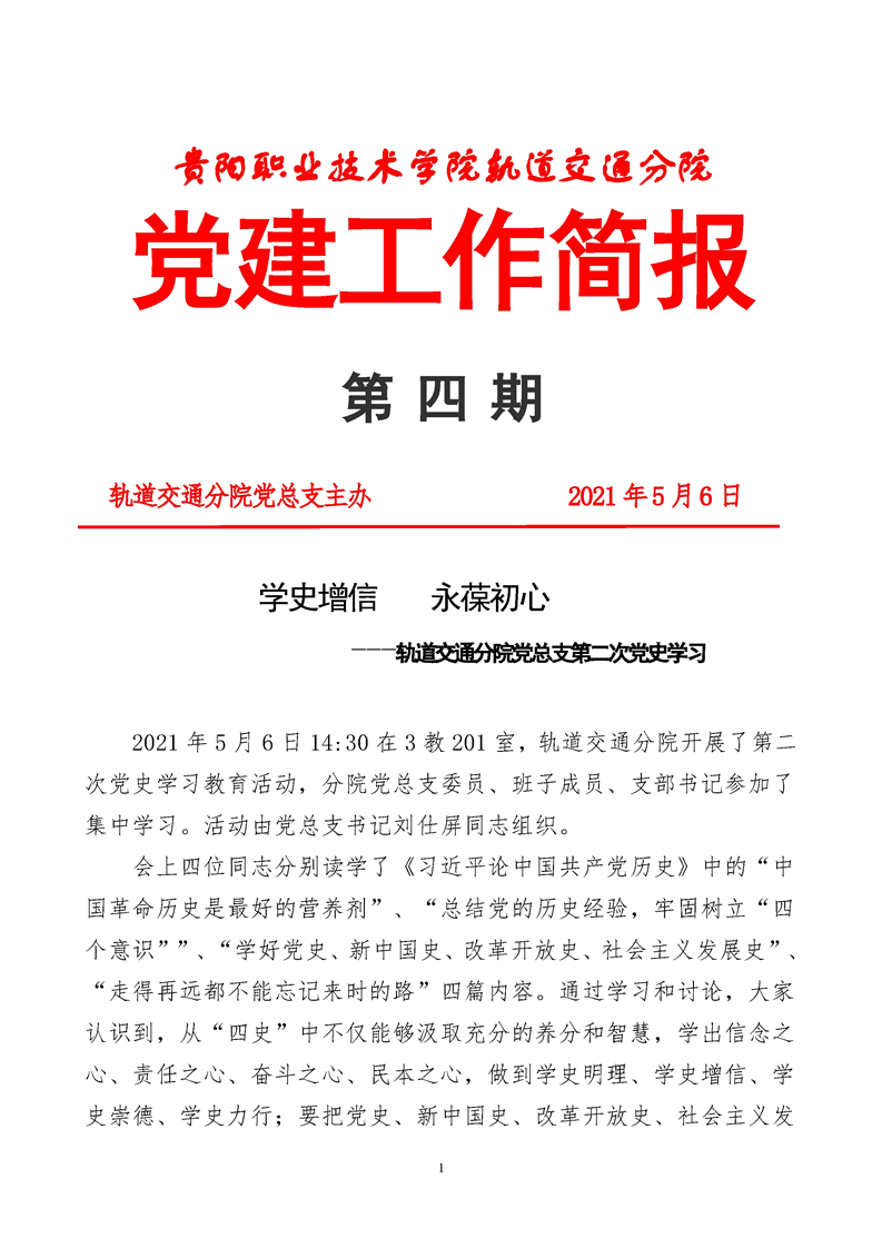 学史增信 永葆初心——轨道交通分院党总支第二次党史学习