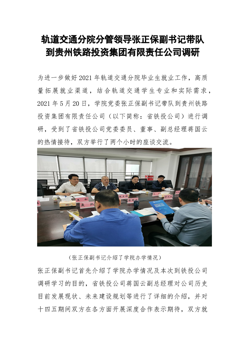轨道交通分院分管领导张正保副书记带队到贵州铁路投资集团有限责任公司调研