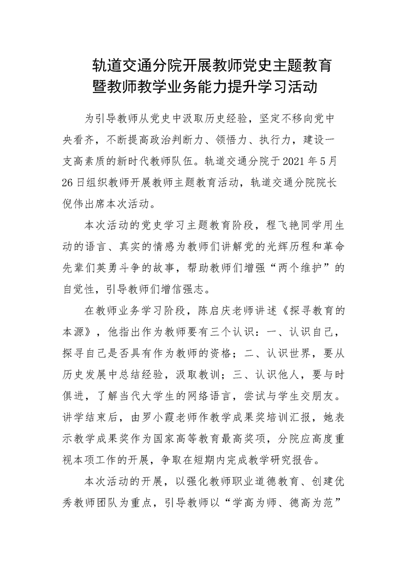 轨道交通分院开展教师党史主题教育 暨教师教学业务能力提升学习活动