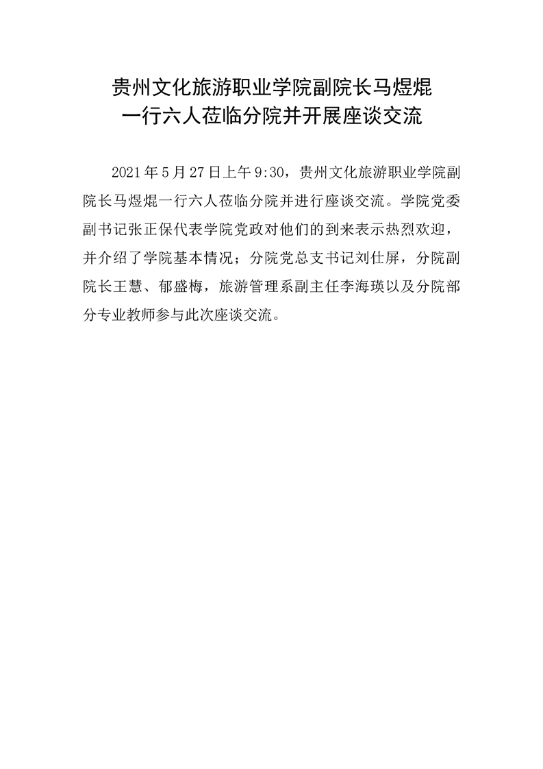 贵州文化旅游职业学院副院长马煜焜 一行六人莅临分院并开展座谈交流
