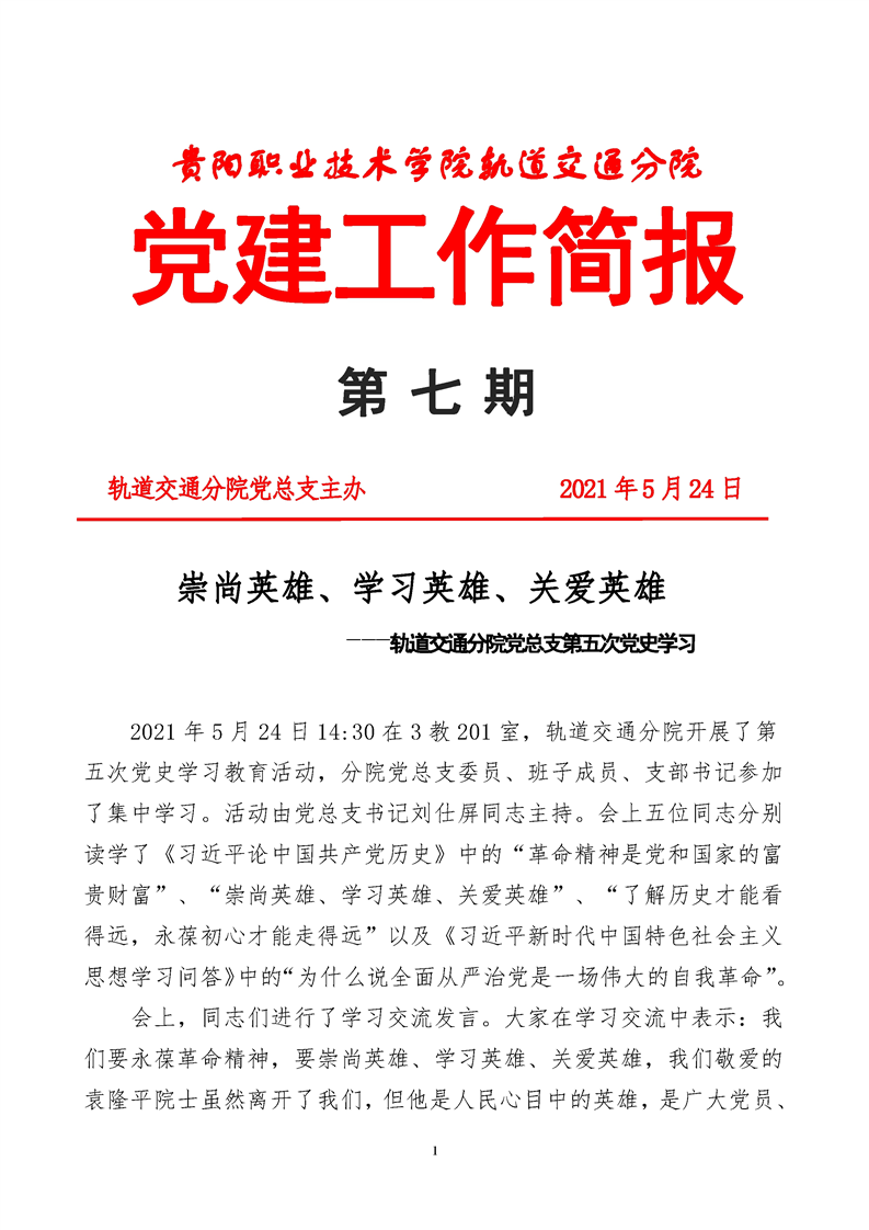 崇尚英雄、学习英雄、关爱英雄---轨道交通分院党总支第五次党史学习