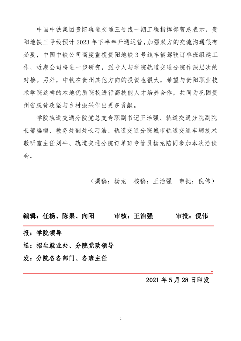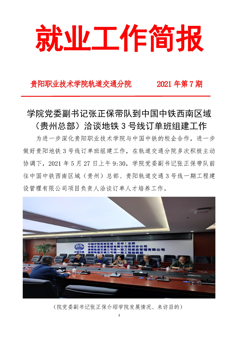 学院党委副书记张正保带队到中国中铁西南区域(贵州总部)洽谈地铁3号线订单班组建工作