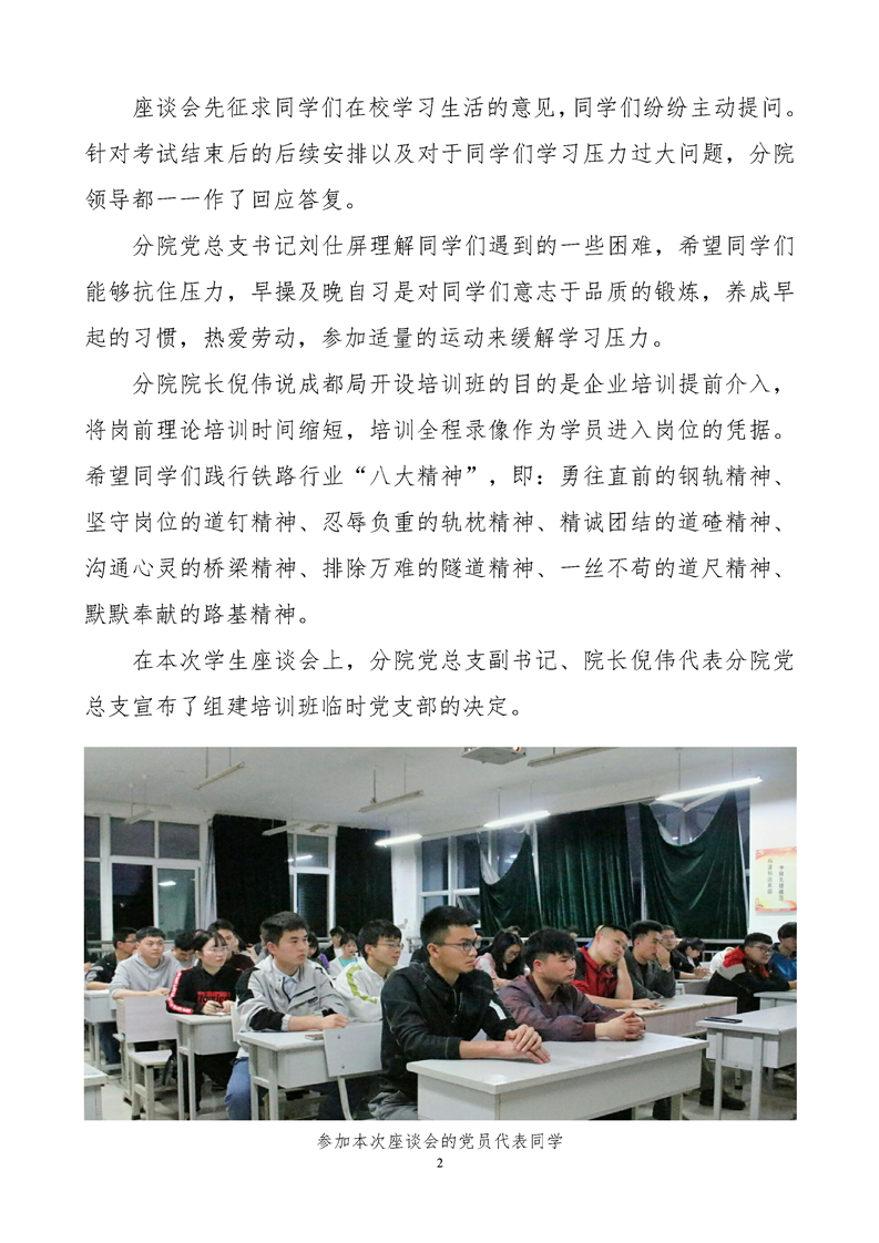 分院学生党支部、团学工作部 召开成都局定向培训班党员学生座谈会