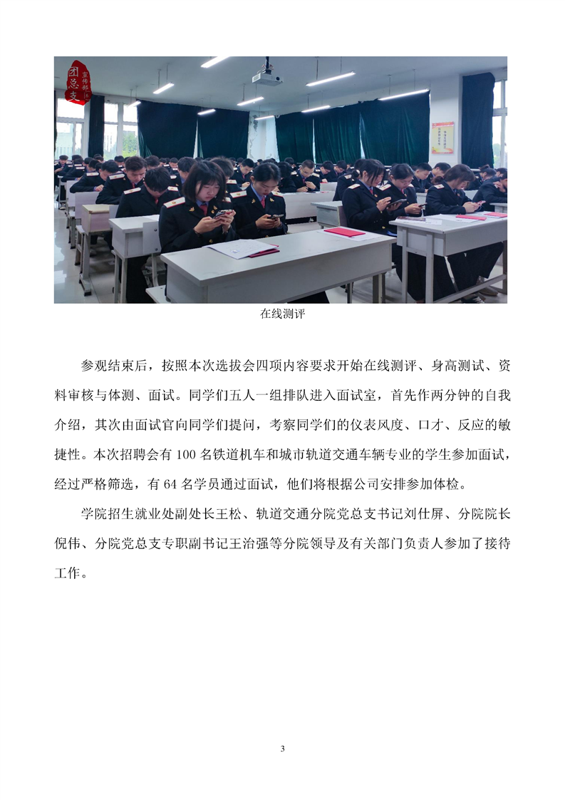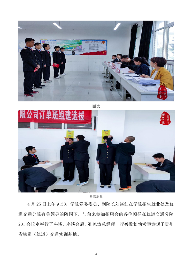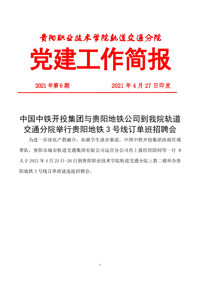 中国中铁开投集团与贵阳地铁公司到我院轨道 交通分院举行贵阳地铁 3 号线订单班招聘会