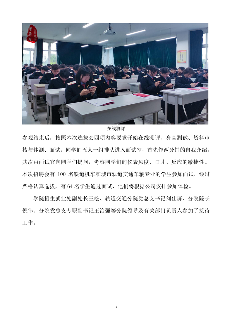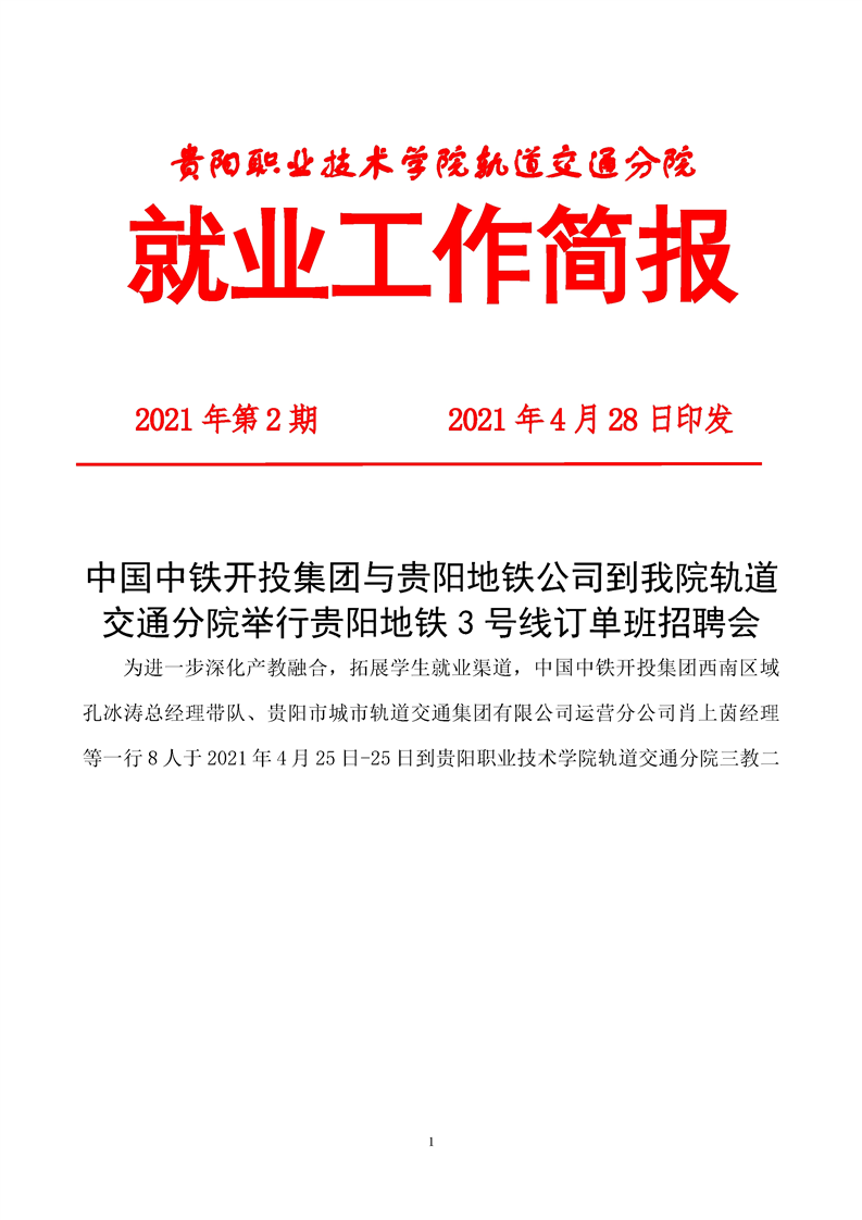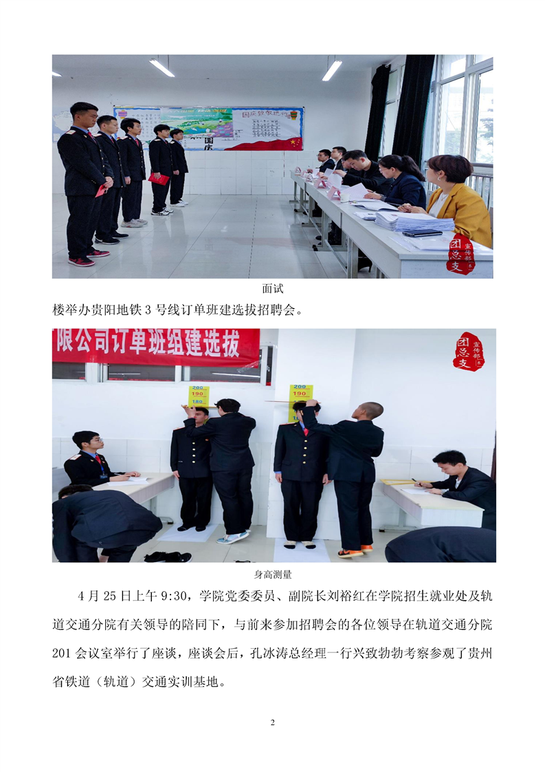 中国中铁开投集团与贵阳地铁公司到我院轨道交通分院举行贵阳地铁3号线订单班招聘会