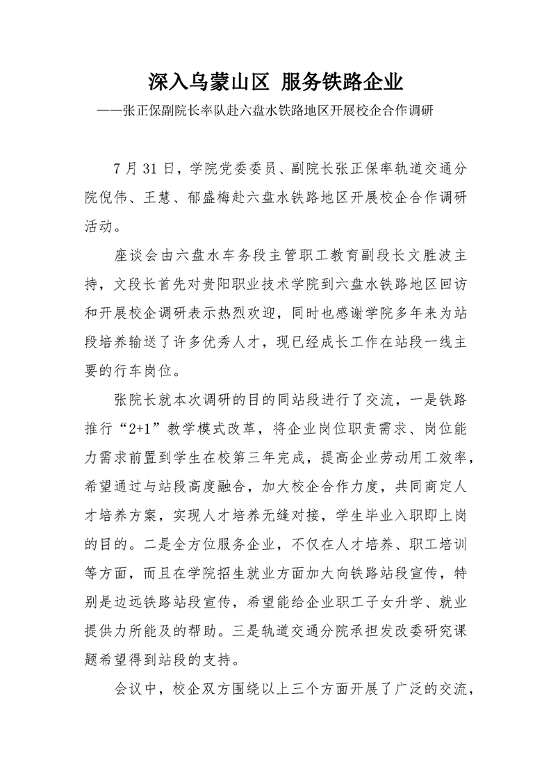 深入乌蒙山区 服务铁路企业 ——张正保副院长率队赴六盘水铁路地区开展校企合作调研