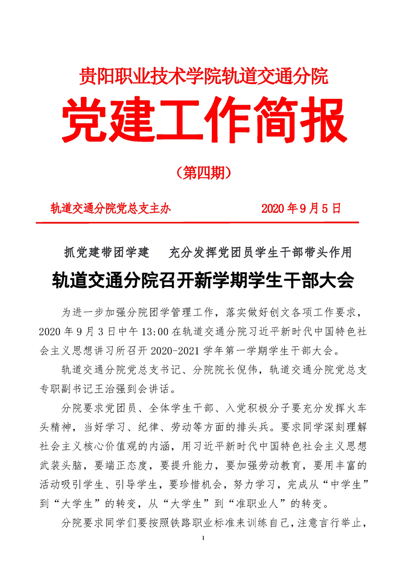 轨道交通分院召开新学期学生干部大会