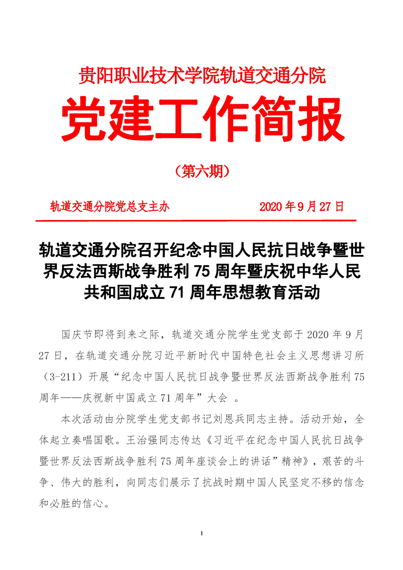 轨道交通分院召开纪念中国人民抗日战争暨世界反法西斯战争胜利75周年暨庆祝中华人民共和国成立71周年思想教育活动
