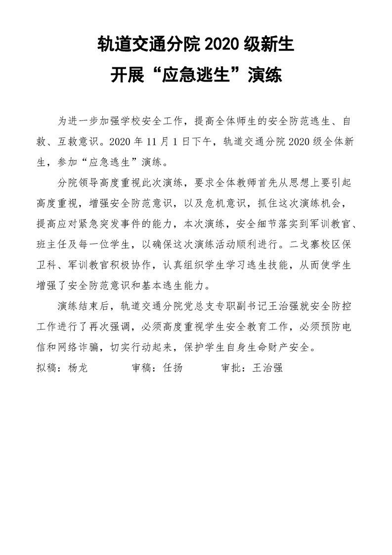 轨道交通分院2020级新生 开展“应急逃生”演练