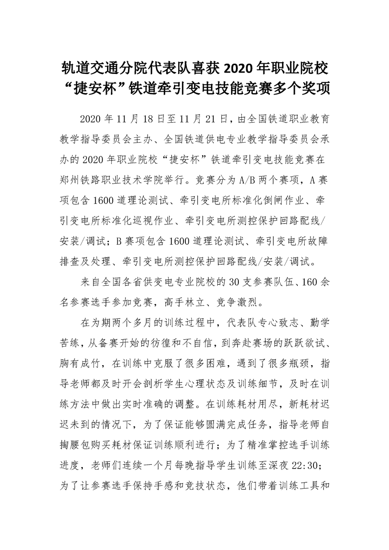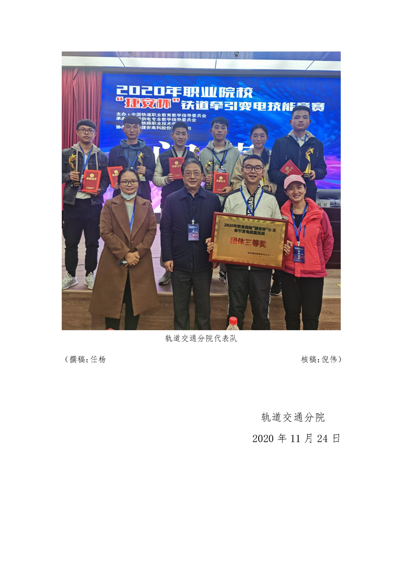 轨道交通分院代表队喜获2020年职业院校“捷安杯”铁道牵引变电技能竞赛多个奖项