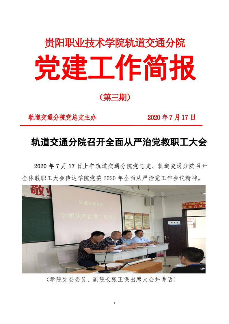 贵阳职业技术学院轨道交通分院 党建工作简报 (第三期)