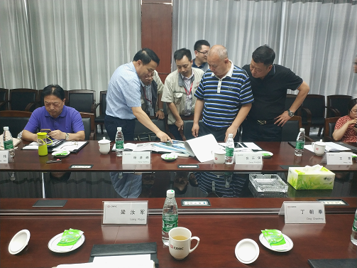 杨彦峰书记、张正保副院长与工厂技术人员对设备场地布置进行谈论