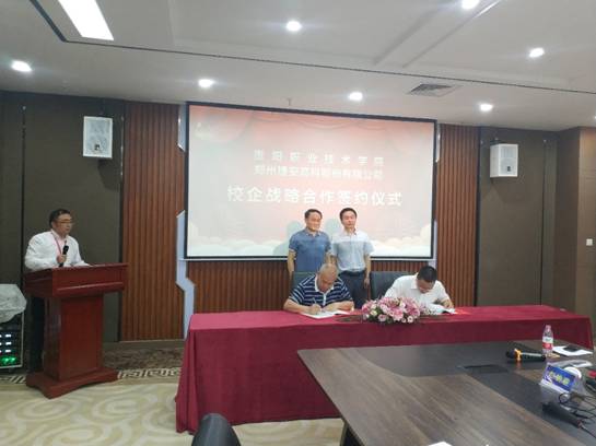 6月11日上午,党委书记杨彦峰一行抵达郑州,应邀考察郑州捷安高科股份有限公司(国家级轨道交通行业研发中心),参观了捷安高科股份有限公司轨道交通类的教学设备及模拟仿真设备,下午举行了座谈会,双方就智能化、开放性实训基地的建设、科研课题、技能大赛、行业标准制定、教学资源和课程教材的开发、国际交流合作等事项进行了热情友好地交流讨论,达成了共识,最后双方签订了校企战略合作协议。