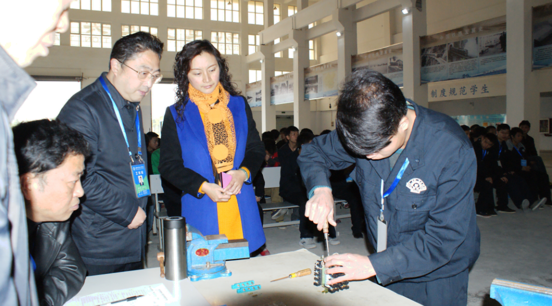 技能比拼在紧张进行中(图中左一为总裁判长成都铁路局贵阳机务段检修车间主任阳宗英)
