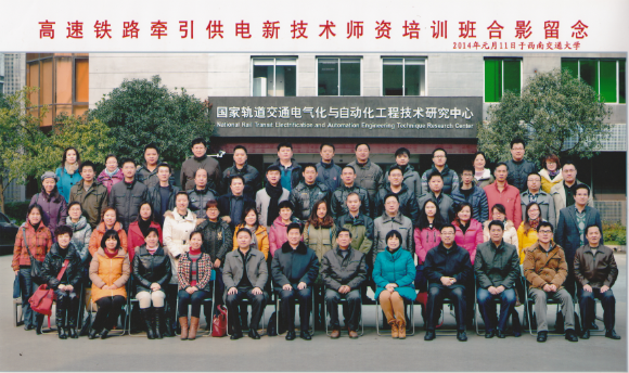 由全国铁道职业教育供电专业教学指导委员会主办,国家轨道交通电气化与自动化工程技术中心承办的高速铁路牵引供电新技术师资培训班于2014年01月10日在西南交通大学开班。培训时间从2014年01月10日到16日,参陪院校及培训基地有:广州铁路职业技术学院、西安铁路职业技术学院、湖南铁道职业技术学院、杭州铁路职工培训基地、贵阳职业技术学院等共25所高职院校及培训基地,共计58名教师参加培训。贵阳职业技术学院轨道交通分院常务副院长倪伟、教师任杨参加此次培训。