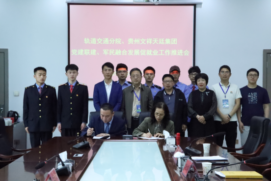 为深化党建联建、产教融合、校企合作,开拓“三全育人”新格局,轨道交通分院与贵州文祥天廷建设工程集团有限公司(以下简称文祥天廷集团)开展党建联建活动,并召开了党建联建、军民融合发展促就业工作推进会。