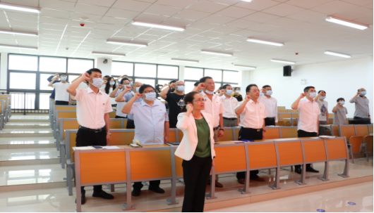 会上,刘仕屏同志带领全体党员进行宣誓,重温入党誓词。参会党员及新发展党员,面向鲜红的党旗举起右手庄严宣誓,铿锵有力的誓言表明了党员干部坚定不移的政治信念和矢志奋斗的坚强决心。