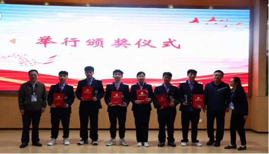 比赛结束获奖的选手们与轨道交通分院领导合影