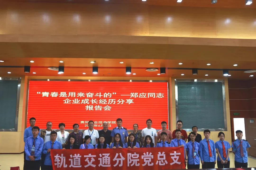 为提升学院教师思想政治和师德师风建设水平,弘扬劳动精神、劳模精神、工匠精神,培养学生树立对党忠诚的政治本色、精钻技能的职业追求、尽职尽责的职业担当。6月9日,“青春是用来奋斗的”郑应同志成长锻炼事迹报告会在贵阳职业技术学院图书馆报告厅举行。由中国铁路成都局集团有限公司贵阳电务段集中维修车间电源屏工区工长、技师郑应到校宣讲,学院400余名师生现场聆听报告。宣讲会由学院轨道交通分院院长倪伟主持。