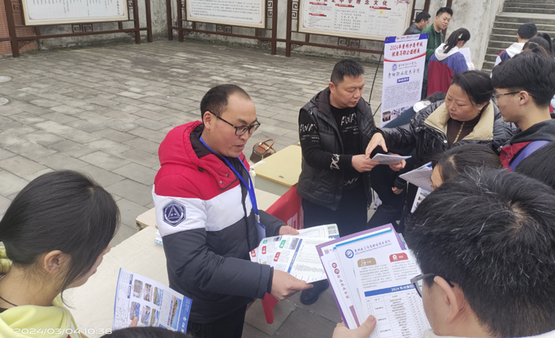 根据学院招生工作安排,分院潘昌杉教师于2024年3月4日至7日赴黔南州参加招生宣传工作。经过四天的行程:贵阳-贵定-三都-都匀-福泉-瓮安-贵阳,一路风尘仆仆,一切为了学生,跨越黔南5个区县,走进8所高中,精准覆盖近2000多名高三学子,为同学们答疑解惑,根据学生意向、兴趣爱好、家庭情况推荐专业,利用图文并茂的招生简章给学生细心讲解,耐心热情地解答家长和学生的咨询,嘱咐学生学院志愿填报时间,积极加学院分类招生QQ群或拨打招生热线电话咨询相关事宜。
