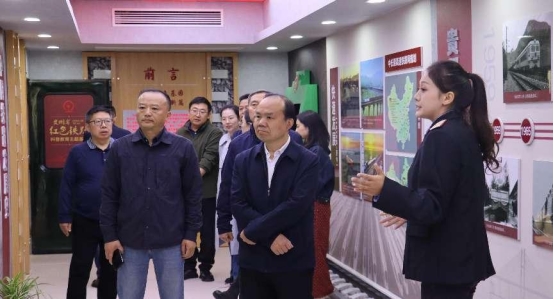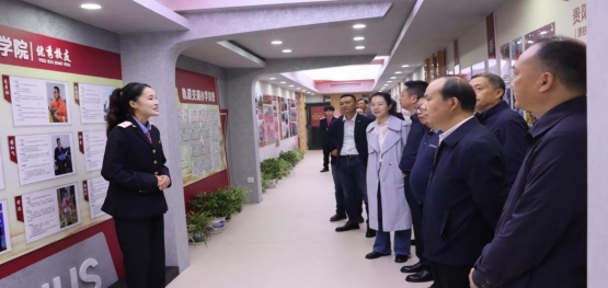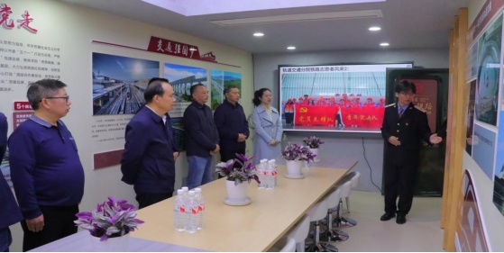 2024年11月1日上午,为深入学习贯彻党的二十大和二十届三中全会精神,大力弘扬科学家、教育家精神和铁路红色精神,更好传承铁路红色基因,贵阳职业技术学院党委书记刘雁,党委委员、组织部长邹劲松,党委委员、办公室主任、统战部长翁庆等一行到轨道交通分院牵头建设的贵州省科协批复建设项目-贵州省红色铁路科普教育主题基地开展调研。