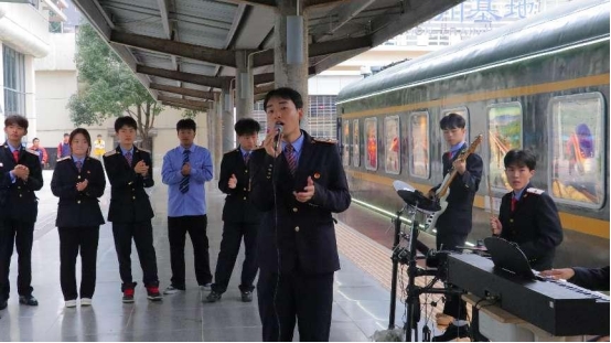 座谈结束,走到红色铁路科普教育主题基地站台,刘雁书记一行兴致勃勃地观赏了红色火车头乐队《中国高铁》、《站台》、《送你回家》等曲目的演唱排练,刘雁书记指出:“要为学生成长搭好平台,促进学生全面成长。”分院学生纷纷表示,将一定认真努力学习,苦练技能,守好红色阵地,让铁路红色基因代代相传,争做有理想、有本领、有担当的新时代青年。分院党总支书记王治强说,轨道交通分院作为西南地区铁路人才培养的重要基地,一定牢记嘱托,始终秉持初心使命,矢志为党育人、为国育才,努力为“交通强国”建设培养更多德智体美劳全面发展的高素质技术技能人才,为中国式现代化贵州实践新篇章贡献自己的青春力量。