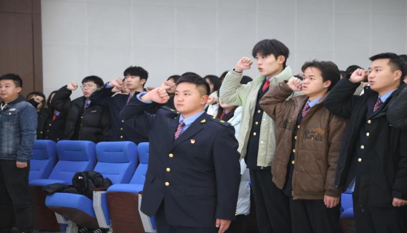 随后,参与本次春运社会实践活动的轨道交通分院青年学生集体宣誓,由学生党员代表刘伟航领誓。学生党员代表张佳薇做表态发言。