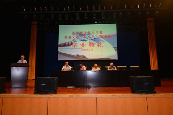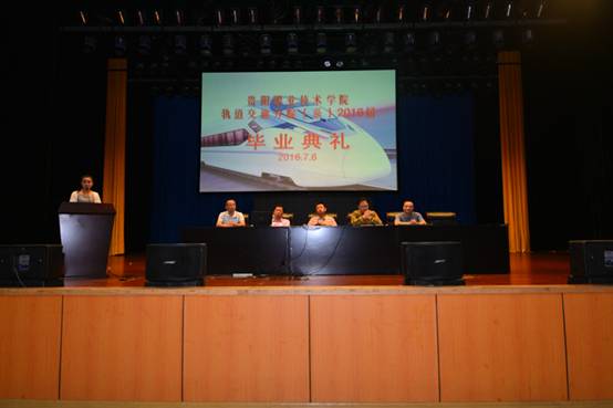 2016年7月6日上午,轨道交通分院在学院大礼堂举行2016届毕业生毕业典礼。参加毕业典礼的有分院副院长倪伟、张炜、罗闯、王慧、学办主任林乾志,以及2016届毕业班辅导员(班主任)和学生管理办公室老师。毕业典礼由分院副院长张炜同志主持。