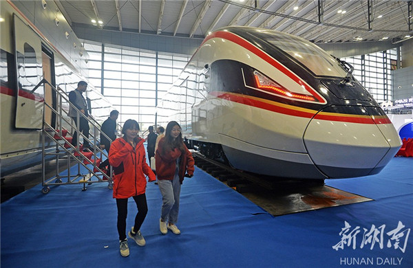 11月15日至17日,2018中国(湖南)国际轨道交通产业博览会将在长沙国际会展中心举行。本次展览,新型双层动车组亮相轨博会展区。