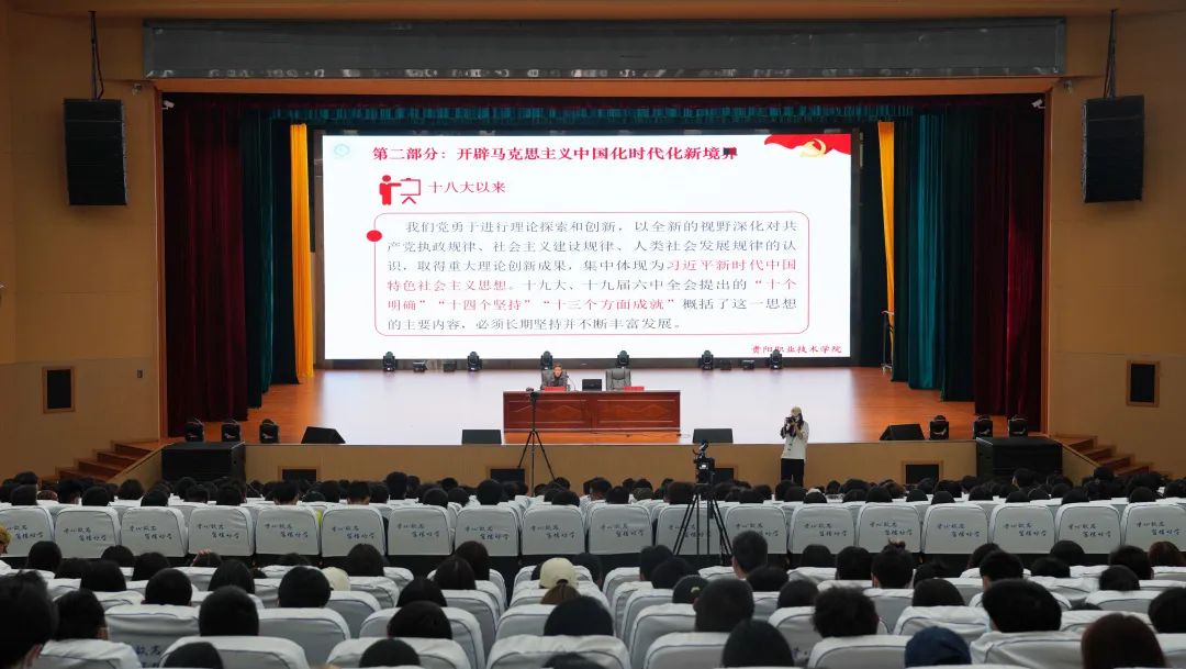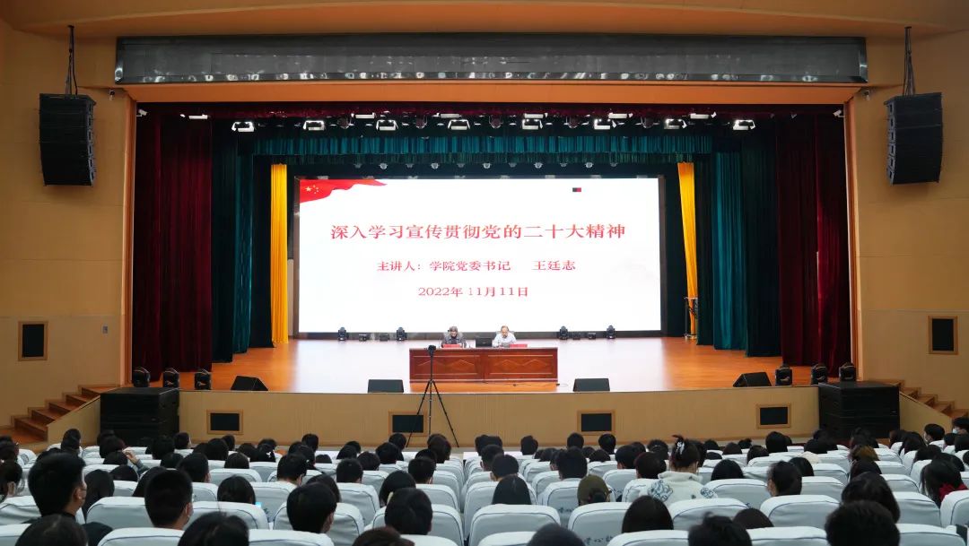 11月11日下午,贵阳职业技术学院大礼堂里掌声阵阵、气氛热烈,市委宣讲团成员、学院党委书记王廷志向学院师生宣讲党的二十大精神。党委副书记、院长刘雁主持宣讲,学院领导班子成员、学院各部门、分院系(部)、校区负责人、各党总支、直属党支部书记以及学生代表900余人到场聆听宣讲。