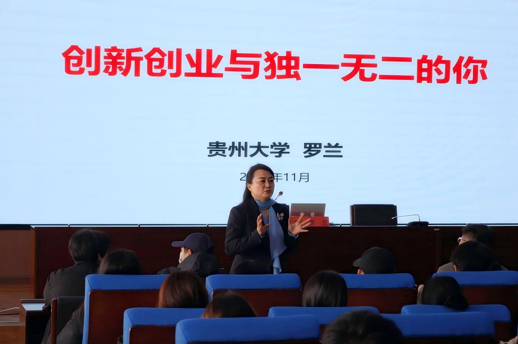 在“学生创新创业动员宣讲会”上,罗兰教授以《创新创业与独一无二的你》为题,带来了一场接地气、有温度的分享。她避开晦涩理论,用鲜活案例讲透“敢闯会创”在当下的时代价值,细致拆解项目发掘的具体路径和团队组建的实用技巧。“日行一寸为得”,她以此鼓励同学们放下顾虑、踏实实践,将个人成长融入国家发展大局,真挚的话语点燃了现场学生的创新热情。