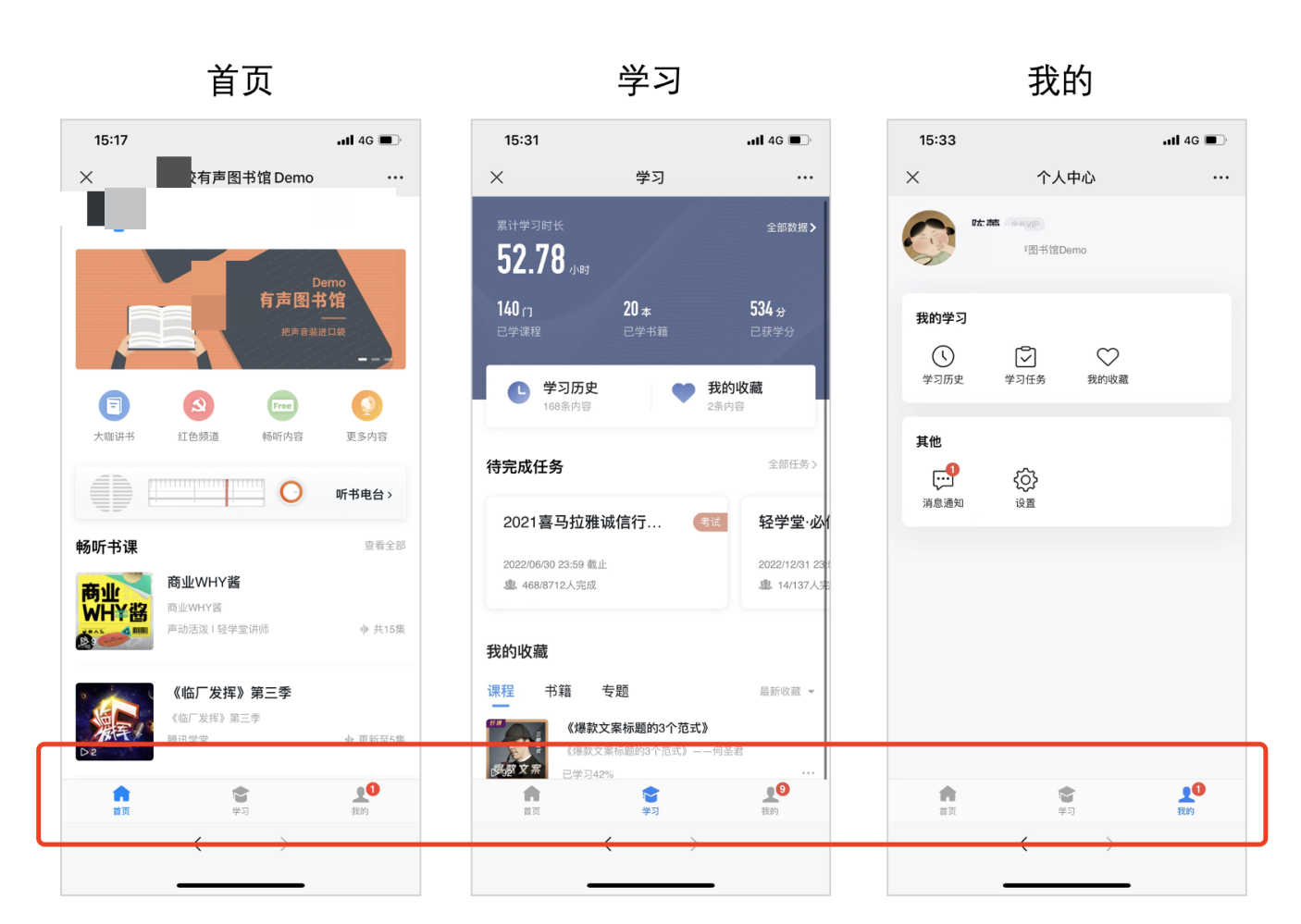 Ø 我的:可在此模块获取阅读历史、阅读任务、通知等信息。