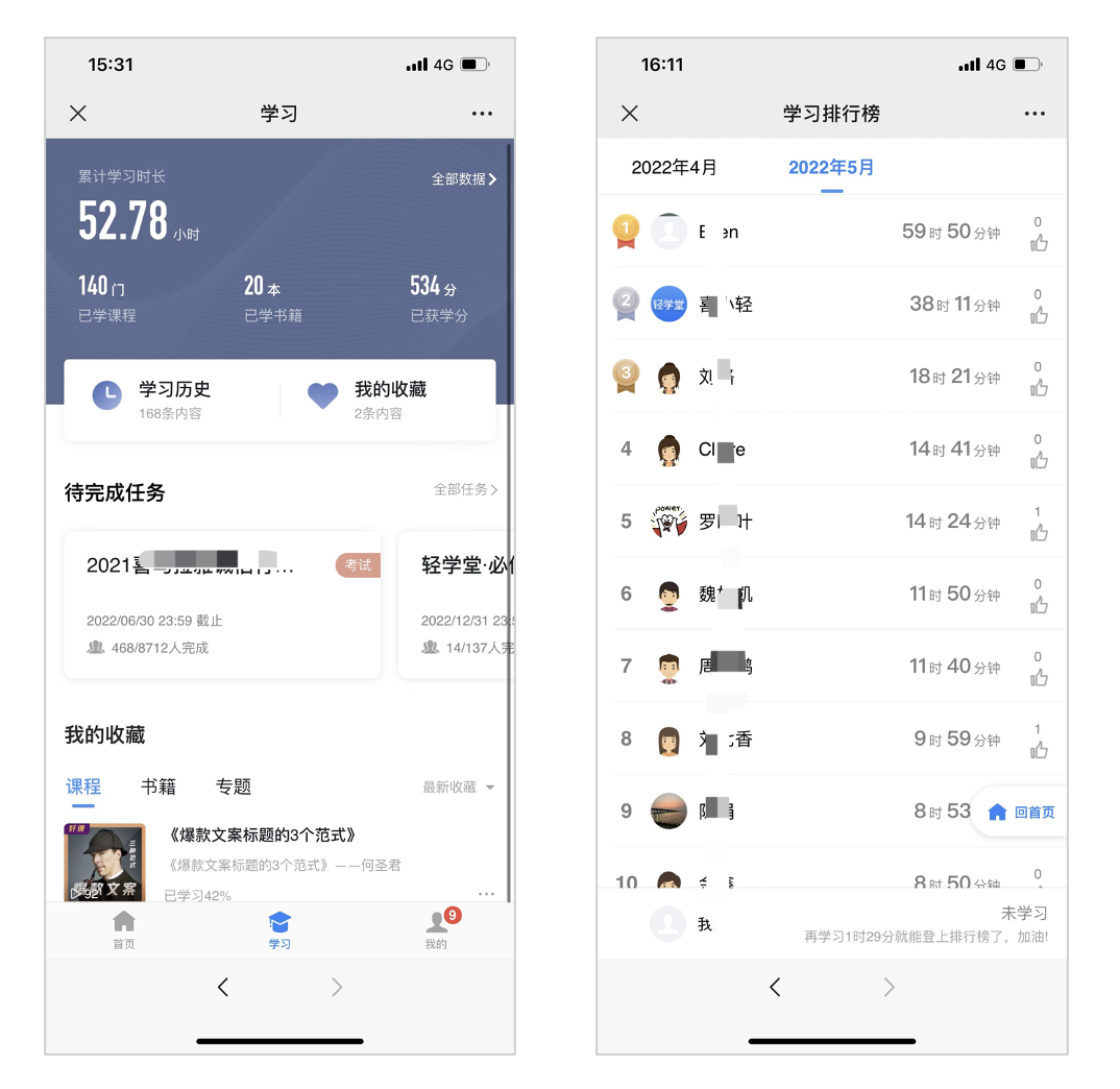 Ø 学习:展示读者当前阅读时长、阅读内容数量等统计。
