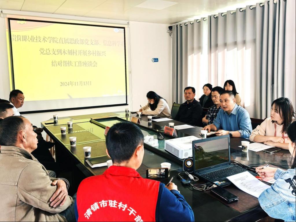 为进一步深化结对帮扶工作,持续发挥党建引领作用,11月13日,信息科学系党总支联合直属思政部党支部,共同前往清镇市木刻村开展乡村振兴结对帮扶工作。此次活动旨在通过实地考察、座谈交流、技术支持等多种形式,解决木刻村的实际需求。信息科学系党总支书记谷甫刚、系主任宋波、党总支专职副书记廖欣瑜及部分教师代表参加此次活动,木刻村驻村第一书记施波、村支书林达丽、村两委班子成员出席。