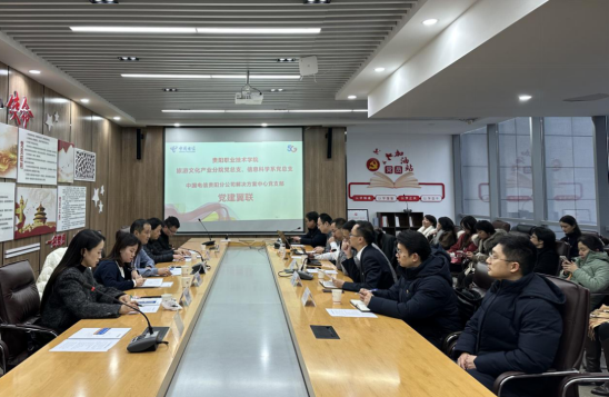 为深化校企合作,推动党建与业务融合发展,12月6日下午,贵阳职业技术学院信息科学系党总支、旅游文化产业分院党总支与中国电信贵阳分公司联合开展了党建翼联活动。旅游文化产业分院院长、党总支副书记陈健,副院长、教师党支部书记张海星,信息科学系党总支书记谷甫刚、系主任宋波,中国电信贵阳分公司党委委员、副总经理贺军,中国电信贵阳分公司解决方案中心党支部书记、总经理梁爽等人参加活动。