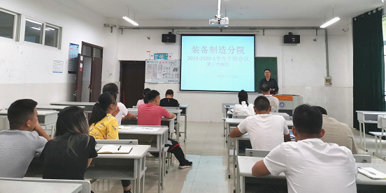 2019年9月16日中午12:40在4-203教室召开了“装备制造分院2019-2020-1学期第三次班长和学生会部长工作会”李明龙书记、副院长、专职辅导员及17、18级在校各班长、学生会主席、副主席、各部部长参会,周桐副院长主持。