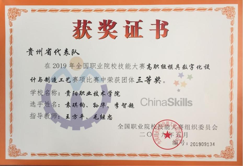 2019年5月17-19日,2019年全国职业院校技能大赛(高职组)“模具数字化设计与制造工艺”赛项在重庆工业职业技术学院举行,来自全国26个省、市、自治区的50支参赛队伍参加竞赛,经过激烈角逐,装备分院代表队荣获该项赛事三等奖。