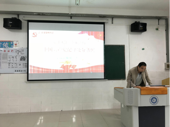 第二阶段,由分院纪检委员周桐同志做党员纪律教育,主要学习了《中国共产党纪律处分条例》修改的时代背景、修改后的八大亮点及重大意义,周桐同志通过《条例》的新旧对照图向大家展示了其主要内容,要求大家一定要深刻领会,全面贯彻。