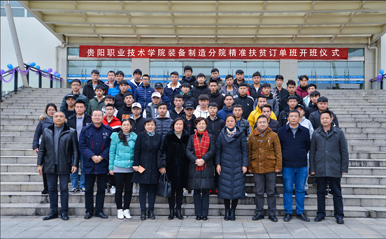 近日,18级汽车检测与维修专业和机械制造及自动化专业“精准扶贫奇瑞订单班”、机电一体化技术专业“精准扶贫海信订单班”在学院本部正式开班。学院党委副书记、院长陈贵蜀、党委委员、学院副院长吴学玲、党委委员、学院副院长代琼、贵阳经济技术开发区人才办副主任、人力资源局副局长俞兵、贵阳经济技术开发区人力资源局就业处处长孙玉香、奇瑞万达贵州客车有限公司运营总监李洪达、贵阳海信电子有限公司综合部部长颜晓飞及相关职能部门领导出席开班仪式。