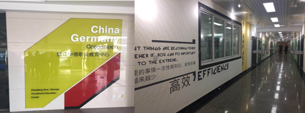 23日上午,与会领导和嘉宾首先实地参观镇江中德职业教育中心,汤俊副校长引导大家参观中心各功能区域,介绍实训室的教学设备和设施,以及人才教学培养、德国职业资格证书认证等方面情况。