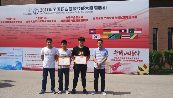 在刚刚结束的2017年全国职业院校技能大赛高职组“自动化生产线安装与调试”决赛中,由贵阳职业技术学院装备制造分院刘建奇、程超两位老师指导、16级五年一贯制机电一体化专业学生王炜、刘涛组成的贵州代表队获得团体三等奖。