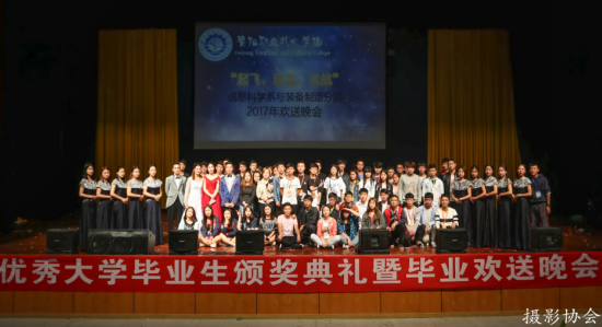 为欢送2014级毕业生暨表彰2014级获优学生,展现分院莘莘学子的风采,近日,装备制造分院2017年“起飞、珍重、远航”欢送晚会暨表彰大会在学院大礼堂隆重举行。本次晚会由装备制造分院与信科系携手举办,分院团总支学生会承办。