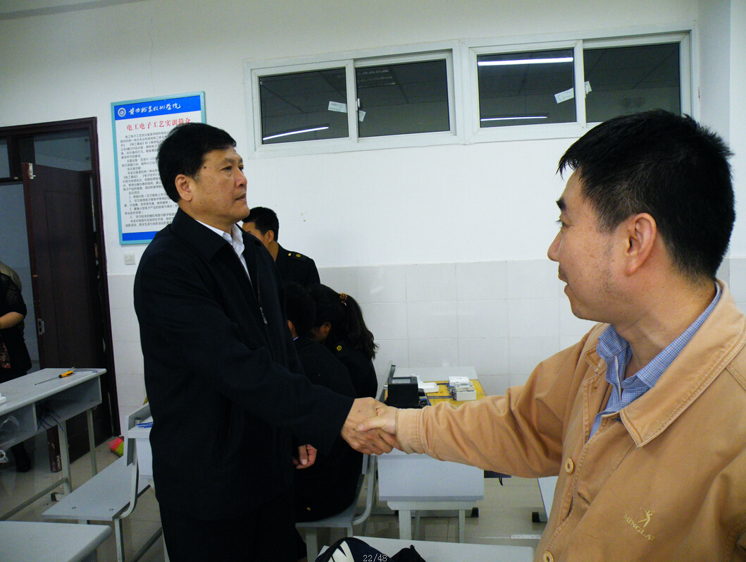 参观结束后在407会议室进行座谈,院党委书记杨彦峰参加座谈会。吴学玲副院长介绍了学院的基本情况,石厅长对学院多年来在高技能人才培养方面取得的成绩表示肯定,鼓励学院积极探索高等职业教育与技工教育的融合,高标准建好高技能人才培养基地和技能大师工作室。杨彦峰书记对来宾的到来表示热烈欢迎,并介绍了学院的总体情况,要求装备分院要参照国内发达地区高技能人才培养基地建设经验,结合学院省级示范建设,高标准做好做实高技能人才培养基地建设。