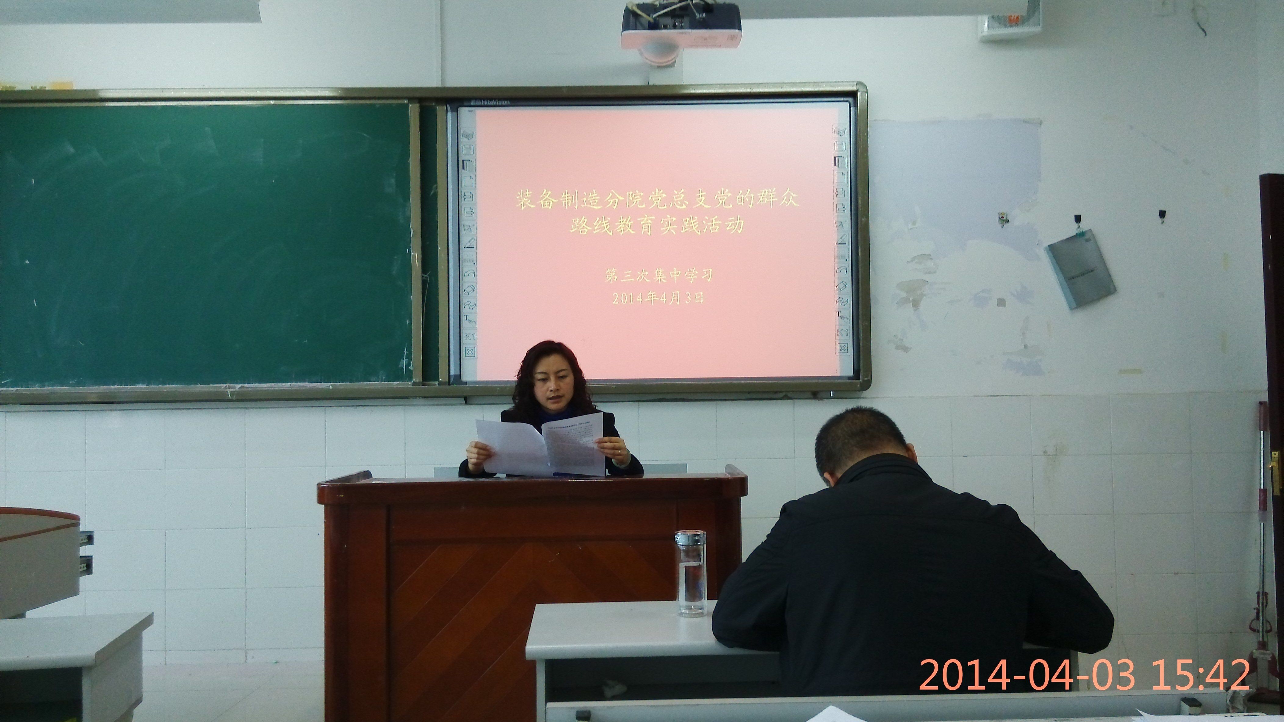 2014年4月3日下午3:30,分院党总支在3-301教室组织所有党员进行第三次群众路线教育实践活动集中学习,学习内容如下:
