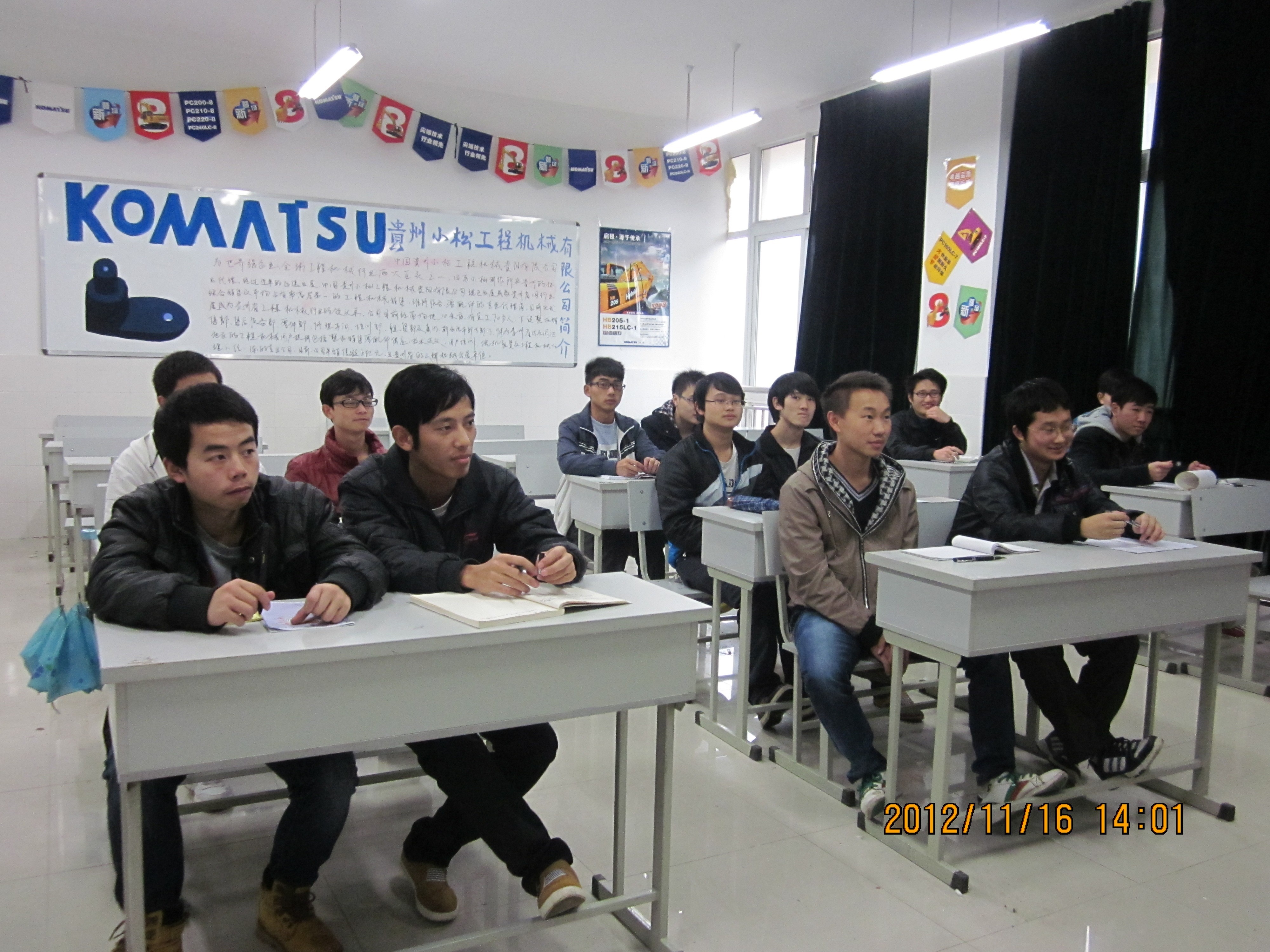 学院领导和机电技术系与小松工程机械公司经过多次磋商并于2012年7月23日签订了校企合作协议。2012-2013学年第一学期经过选拔的11级“机电一体化技术”和“数控技术”专业的35名学生组成的“小松班”开课了。课程按照企业要求制定,学生在课余时间进行教学,课程全部由企业一线的技术人员和高级管理人员授课。