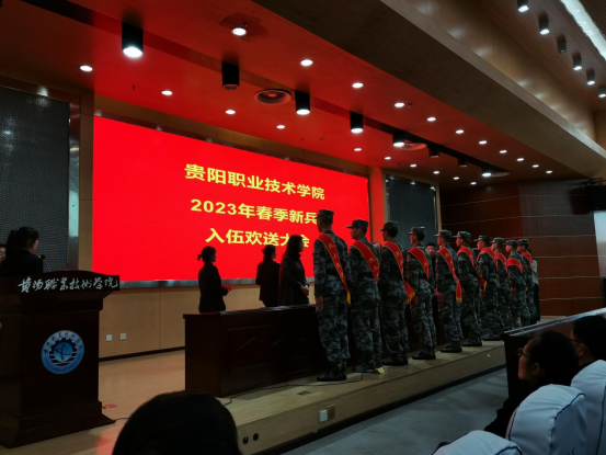 会上,学院领导为入伍新兵佩戴光荣花,新兵代表发言,学院党委副书记、院长刘雁对新兵以及在校学生寄予希望,全体参会人员共唱《国歌》、《中国人民解放军军歌》。