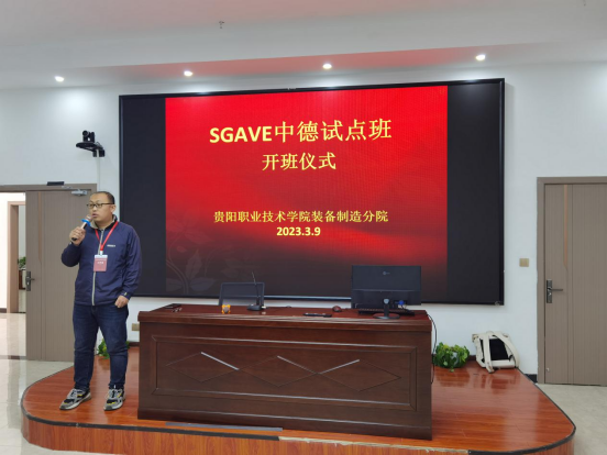 为更好的学习贯彻落实新国发2号文件精神,主动适应经济社会对人才的需求,抢抓发展机遇,推动学院高质量发展,进一步深化校企合作,厚植“能工巧匠”成长沃土,分院聚焦“强省会”行动,聚力学院“双高”建设,全方位促进行业、企业参与职业教育,多渠道、多维度、多层面开展人才培养。2023年3月9日,贵阳职业技术学院装备制造分院的中德SGAVE试点班开班仪式在学校招就处会议室举行。分院副院长董新,山东莱茵科斯特教育培训部电器组主任蒋磊,自动化组主任刘树光出席。