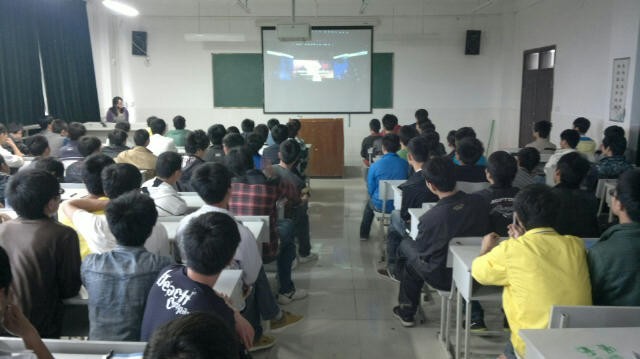 为了向2012级的同学们进行宣传及新一届小松班的招生动员,2013年5月17日星期五,贵州小松工程机械有限公司人力资源部张文珍经理,携邓经理、姚工程师一行,赴我院与同学们见面,召开了宣讲会。我院12机电1、2班、12数控、12汽装,四个高职班,共117名同学参加。机电系杨兴国主任、熊敏主任出席此次宣讲会。